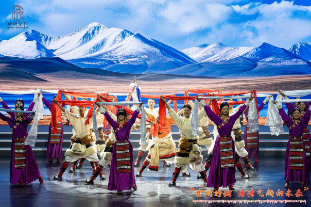 演出高潮迭起。理塘《草原动态》的豪迈奔放与杭州《风雅钱塘》的温婉灵动相映成趣;藏戏的浑厚雄浑与越剧的细腻婉转同台竞艳。藏族长袖与江南采茶在舞台上翩跹共舞,两种文化水乳交融,赢得满堂喝彩。