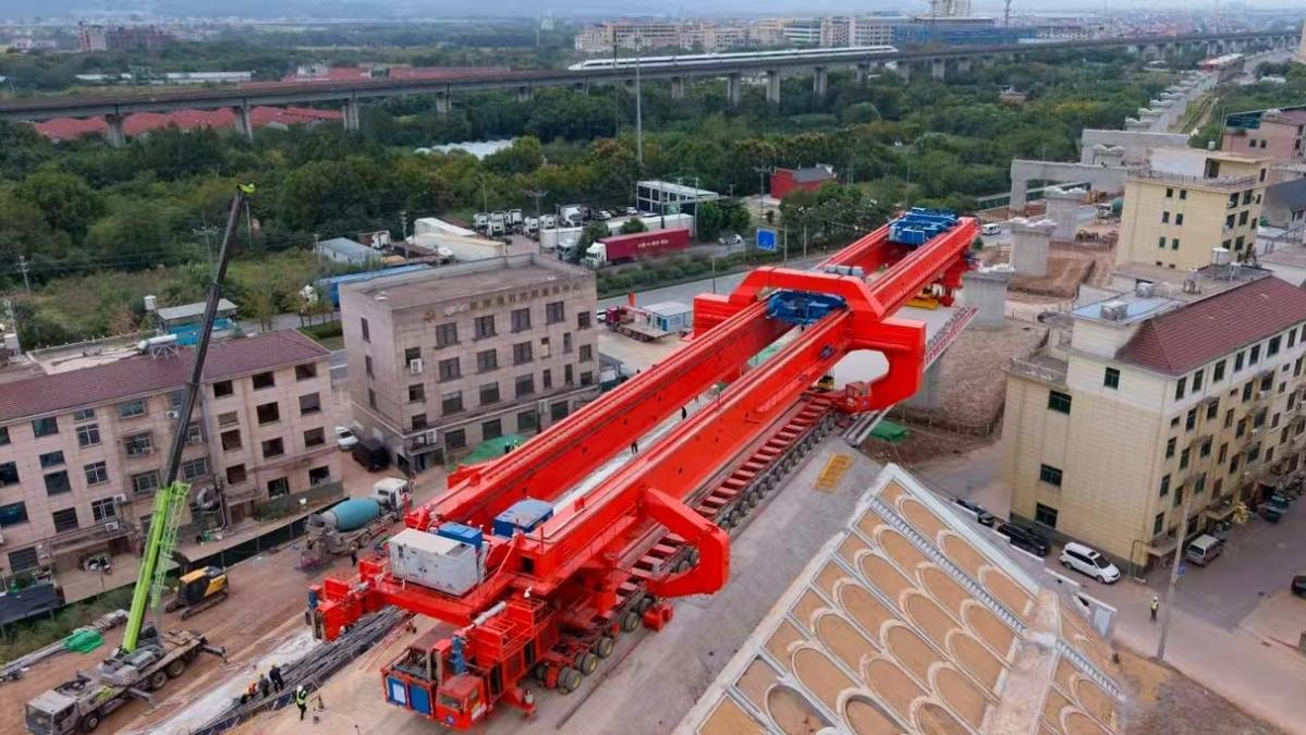 10月24日,金华铁路枢纽扩容改造工程取得关键进展——首孔长32.6米、重约715吨的箱梁在孝顺镇金塘特大桥0#-1#墩成功架设,标志着该工程全面转入箱梁架设与桥面系施工的新阶段,为全线贯通打下坚实基础。