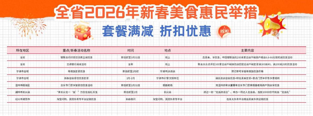 从一场集聚人气的美食市集,到全省铺开的千万消费券;从酒店联动的年夜饭优惠,到平台助推的数字化消费体验——浙江正以“美食”为支点,以真金白银的优惠和覆盖全省的举措,撬动新春消费大盘,营造“暖心暖胃”的节庆氛围。这一系列行动不仅提振市场信心,更让百姓在浓郁的年味中,感受到实实在在的获得感与幸福感。