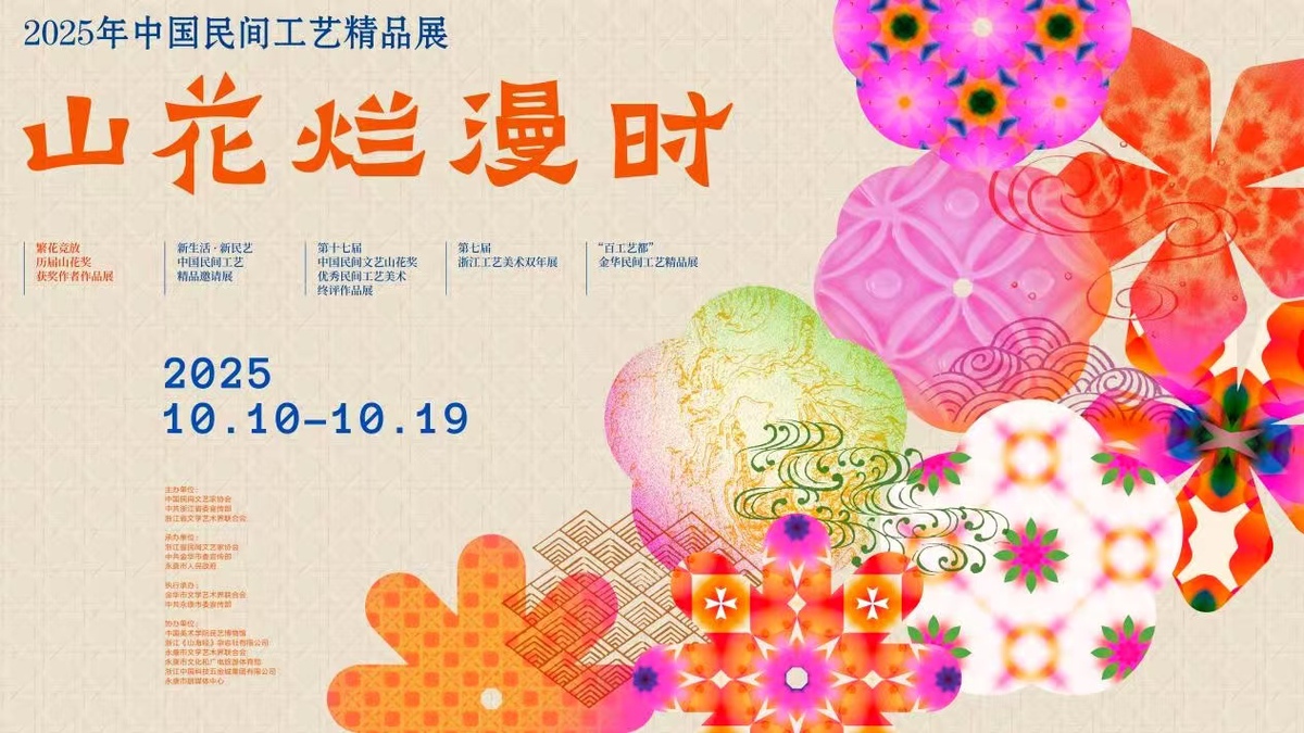 由中国民间文艺家协会、中共浙江省委宣传部、浙江省文学艺术界联合会主办,浙江省民间文艺家协会、中共金华市委宣传部、永康市人民政府承办的2025年中国民间工艺精品展,将于10月10日至19日在金华永康国际会展中心举行。本届展览以“新生活·新民艺——中国民间工艺精品邀请展”为核心展,同时联袂推出第十七届中国民间文艺山花奖·优秀民间工艺美术终评展、第七届浙江工艺美术双年展、“百工艺都”金华民间工艺精品展,四展齐开,共同构成2025年中国民间工艺精品展集群。展览以“守正创新”为内核,聚焦“两创”理念,展示中国民间工艺从传统造物走向现代生活的探索,呈现民间工艺家们扎根传统、面向未来的创作思考与实践路径。本次展览不仅是技艺的展示,也是一次关于民间工艺当代价值的学术探讨与文化对话。