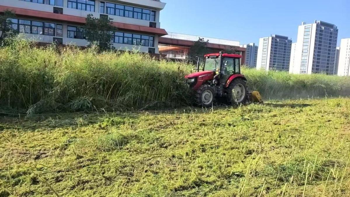 在整治现场,十余位工作人员分工协作,有的弯腰收割高粱穗,有的清理田间杂草,动作娴熟高效;不远处,两台大型旋耕机正匀速穿梭,收获后的土地翻耕成松软的田垄,泥土的清香伴着机器的轰鸣声弥漫在空气中。“这些高粱是今年上半年种植的,现在已经成熟,收割后既能避免作物倒伏影响环境,还能回收利用秸秆。”现场负责人介绍,高粱收割完成后,将立即组织播种油菜籽,预计今年12月至明年3月,这片地块将绽放连片油菜花,成为运溪路沿线一道靓丽的季节性景观。