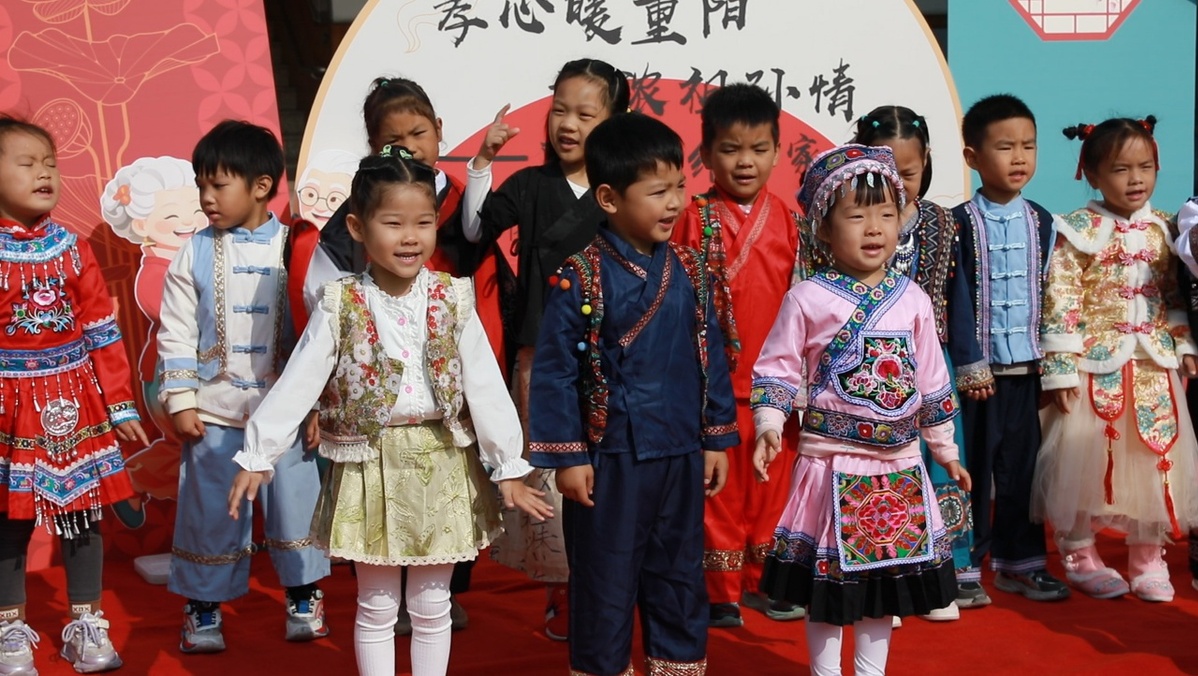 10月27日,宁波奉化尚田实验幼儿园镇南教学点与四川甘洛县新市坝镇幼儿园通过跨越千里的连线,共庆重阳节。40多名身着本民族服饰的奉化小朋友与祖辈、45名甘洛小朋友及老师齐聚“云端”,在歌舞、互动中传递敬老情谊,深化民族友爱,呼应两地对口帮扶与文化协作。